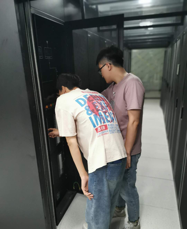 6月12日下午,信阳学院新中心机房进行了首次空调通电调试,现代教育技术中心主任汪国安、副主任刘硕进入现场观摩指导调试工作,具体操作由南京普天天纪工程师主导完成。随着市电开关电闸落下,中心机房6组机柜空调开始正常工作,通电调试成功!