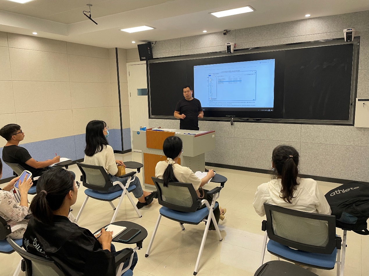 培训会上,张文银首先对我校实验室总体情况以及教师发展中心进行介绍。随后,对微格教室的线上申请流程进行讲解。最后,就微格实训室的操作步骤、个人视频的管理以及纳米黑板的使用进行了演示和讲解,并强调了相关注意事项。在最后的现场互动环节老师们踊跃参与,张文银对老师们提出的疑问进行了指导和解答。最后,张文银对参加培训的老师进行实操考核。