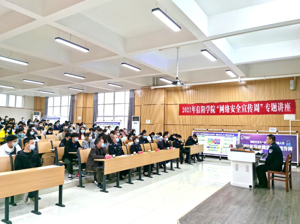10月14日下午,信阳学院2021年网络安全宣传周专题讲座在实验实训中心104教室举办。信息化建设与管理处处长汪国安、全校辅导员老师和100多名学生参加了讲座,讲座由信息化建设与管理处处长助理刘硕主持。