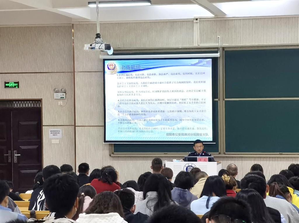 我校邀请了信阳市公安局浉河分局网安大队龚成教导员作《大学生网络安全教育》专题讲座。讲座从互联网起源发展历程,网络安全相关法律政策解读,大学生如何文明上网和需要坚守的底线原则,大学生如何预防网络诈骗,大学生被网络诈骗的案例解读及如何防范网络诈骗和大学生如何防范盗窃、邪教等犯罪行为等方面进行了讲述。特别是龚成教导员从所经历的实际案例出发,为我们介绍了如何预防网络诈骗和文明上网的相关知识,使我校师生对网络信息安全的重要性、网络诈骗的危害性有了更深刻的认识,增强了师生的网络安全意识,筑牢网络安全防线。