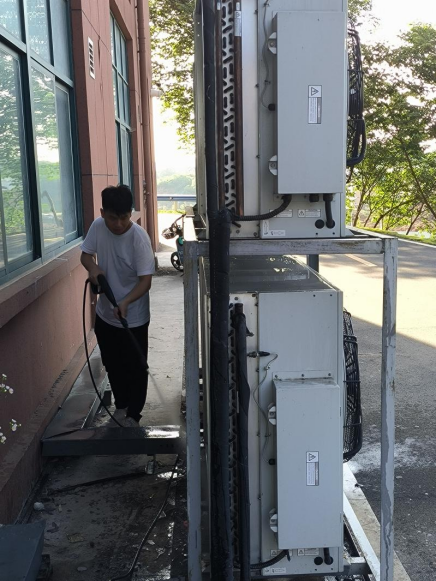 夏日的高温、空调的静电使得空调外机包裹住了大量的灰尘、柳絮、落叶等杂物。从而影响空调通风和制冷效果,容易损坏空调的零部件,而且加剧耗电量。我处主动整改防范,把化解风险的工作抓早、抓细、抓实,组织人力对空调室外机进行“6S”管理。下一步我处将对中心机房空调清洗保养形成常态化机制,打造安全稳定的设备环境。