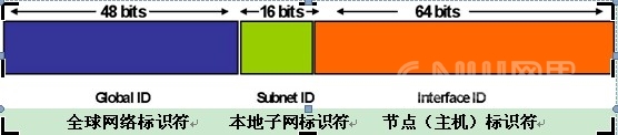 为了便于路由汇聚和简化网络管理,配置,变更和扩展的工作量,IPv6采用层次化、结构化的地址规划,一般来说,按RFC3177的原则,把128位的IPv6地址分为一个64位的网络标识符和一个64位的节点(主机)标识符,节点(主机)标识符通常根据物理地址自动生成,叫做EUI-64(或者64-位扩展唯一标识);64位的网络标识符又进一步分为全球网络标识符和本地子网标识符,通常全球网络标识符占用48位和本地子网标识符占有16位,如下图所示: