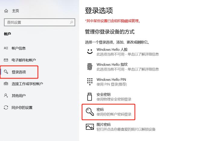 3.点击登录选项并点击密码更改