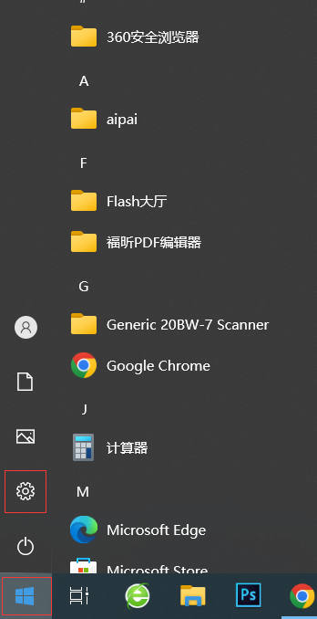 1.点击左下角windows图标并打开设置